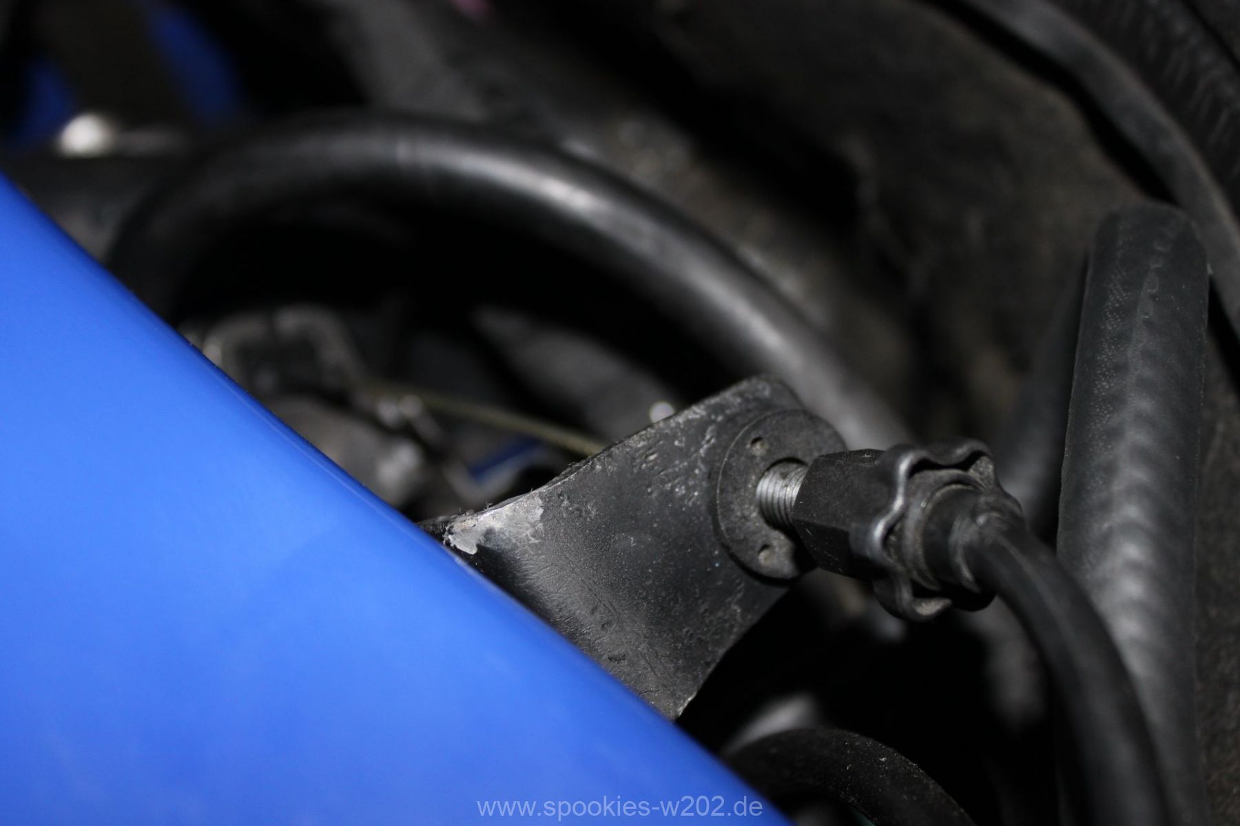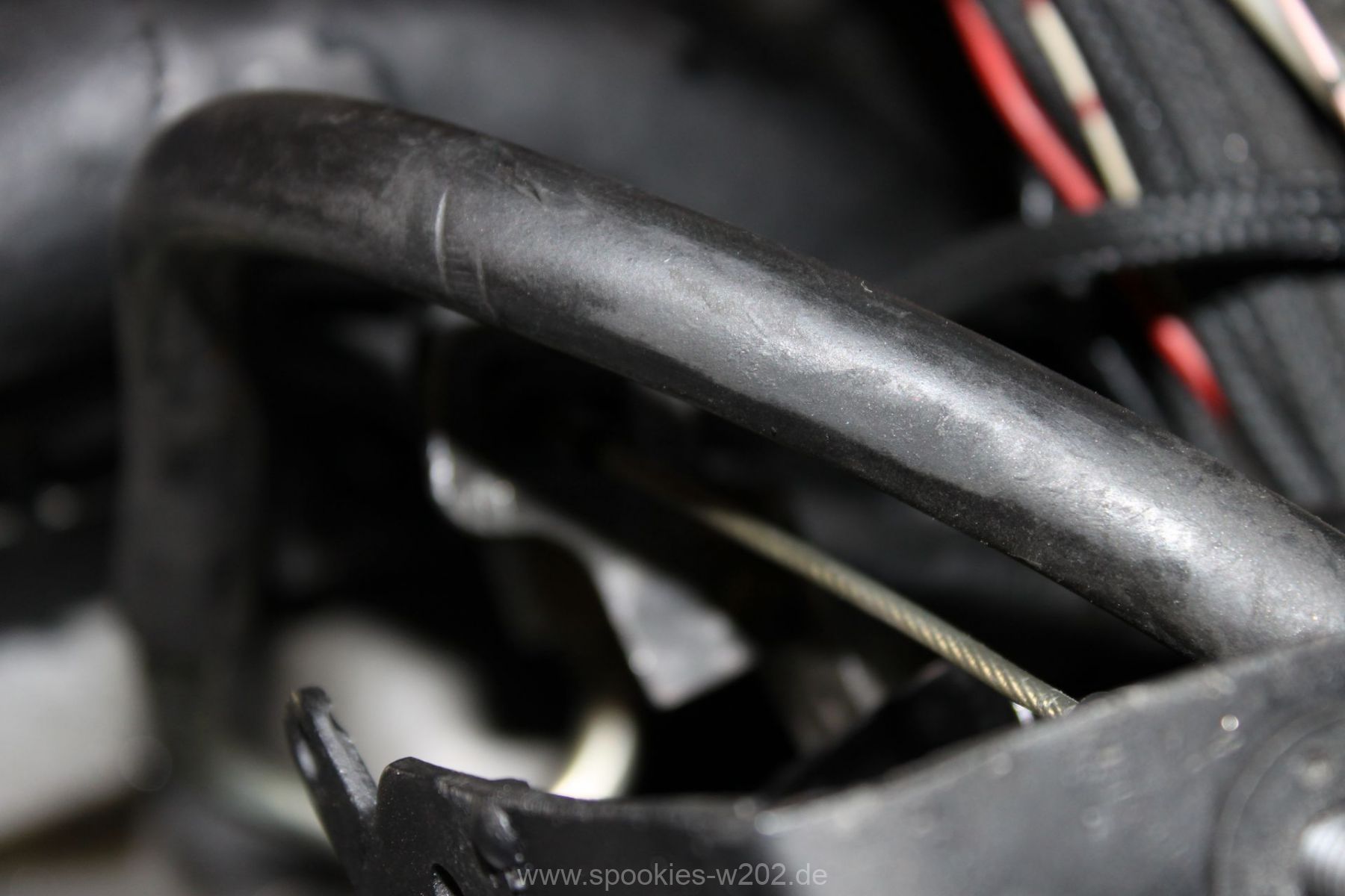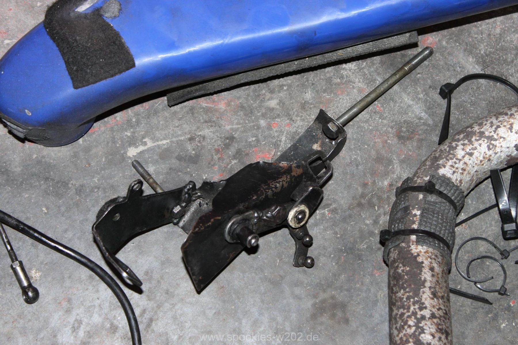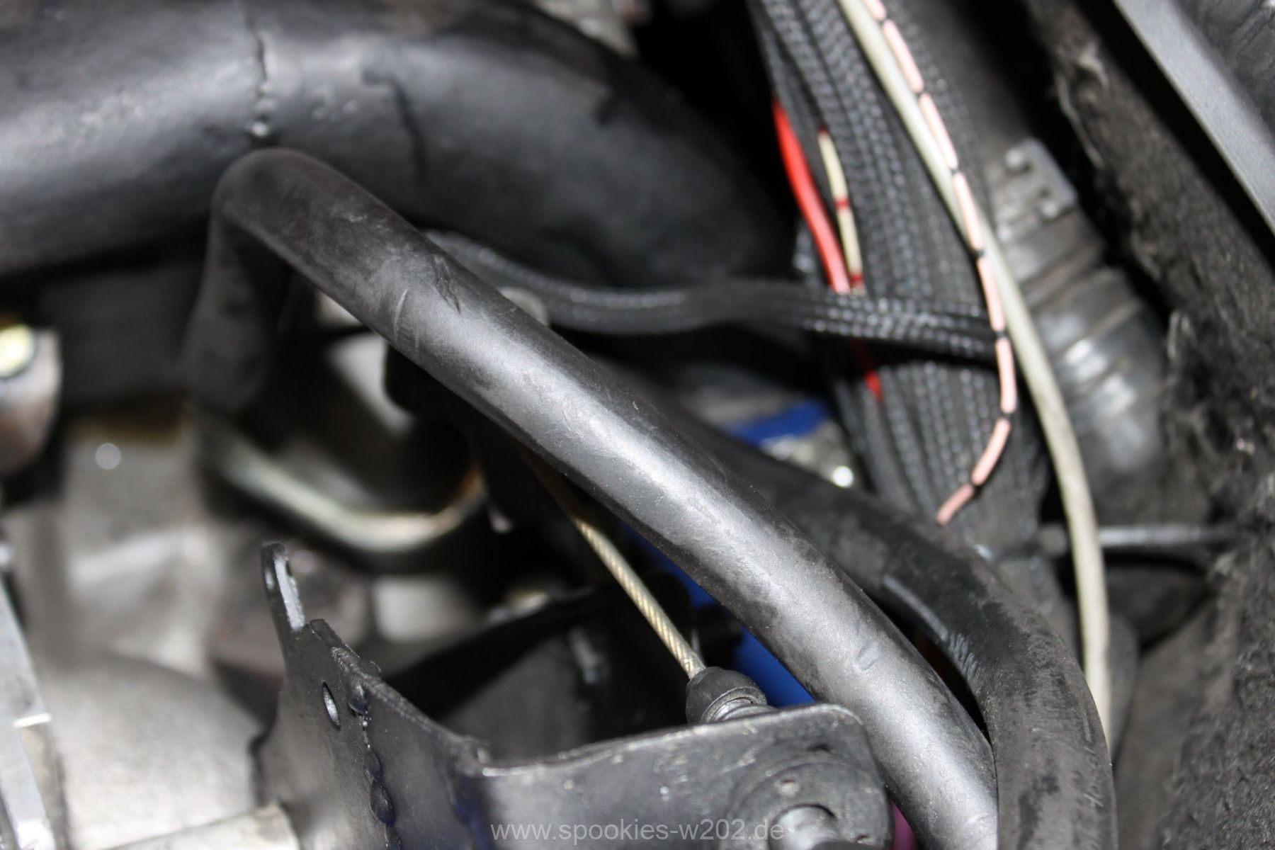 Beim Zusammenbau hat man dann auch das nächste Problem gehoben: der Getriebezug/Gaszug, der bisher nur gehemmt gelaufen war und die Drosselklappe nicht komplett öffnen konnte. Was natürlich einen Nachteil für mich hat weil Leistung nicht ganz genutzt wird und es war sogar so, dass er mal hängengeblieben war und nur mit Kabelbindern freigelegt wurde.