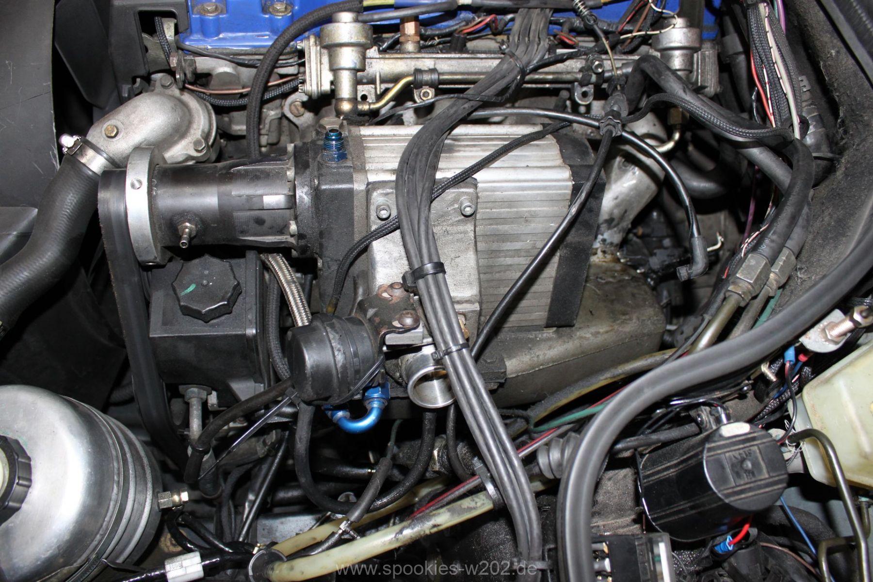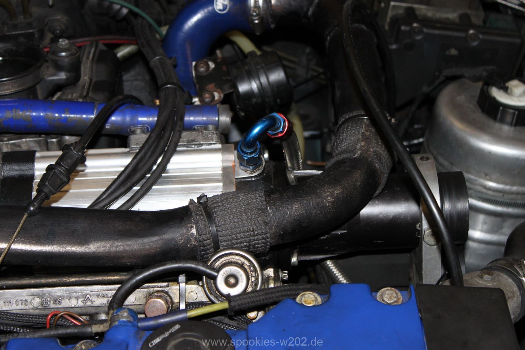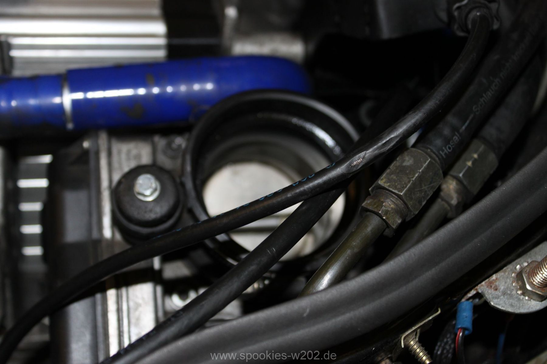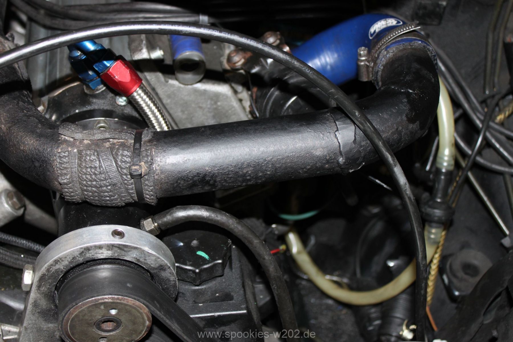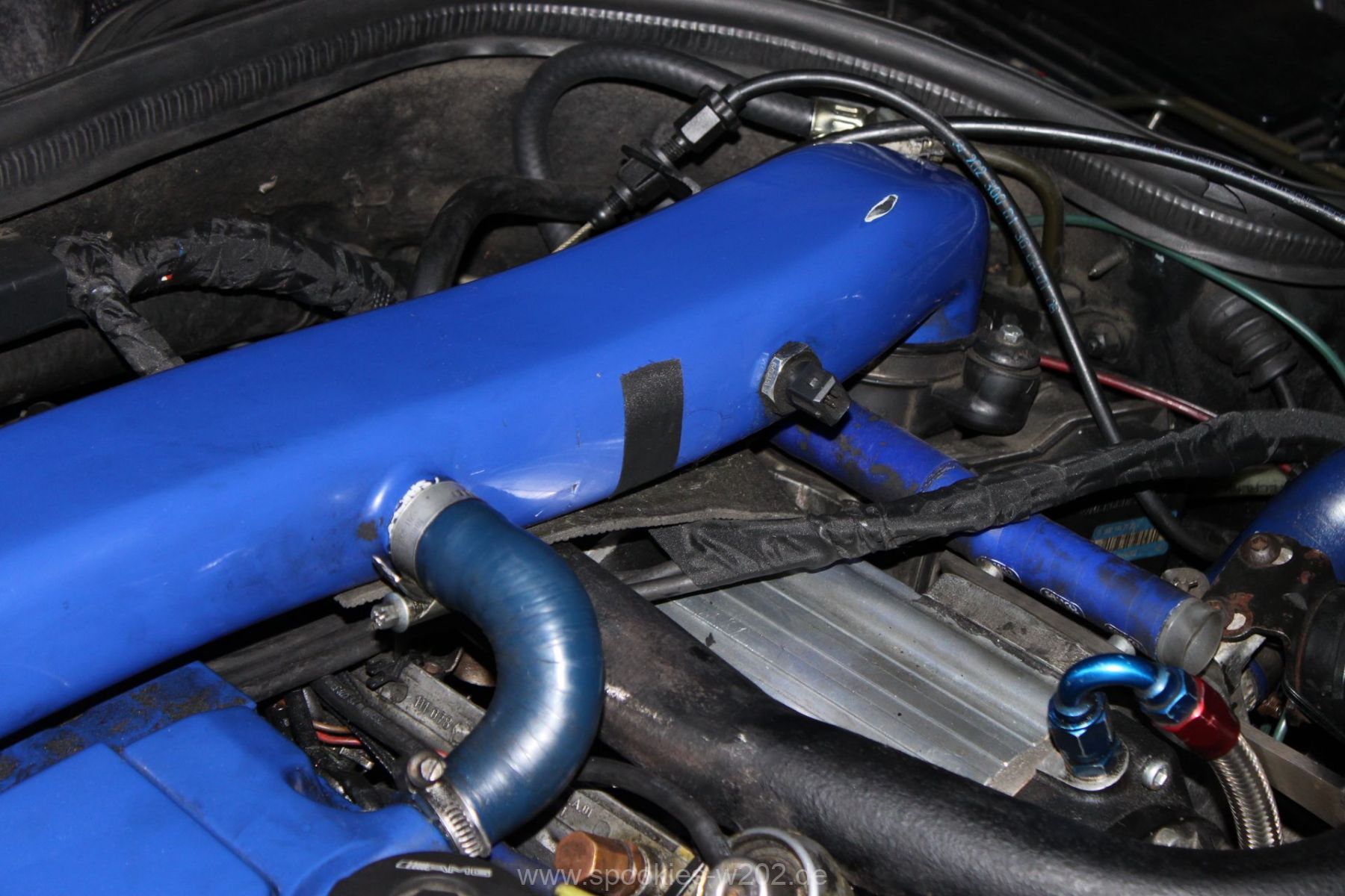 Stören tut mich noch der blaue Schlauch, den man auf dem Lader sieht und der auch keine Funktion mehr hat, seitdem er zugemacht werden musste. Einfach entfernen ging nicht, weil das Loch am Lader zu groß war um es zu schweissen, aber das wird in naher Zukunft auch noch verschwinden, um die Optik zu verbessern. Ebenso die Lackplatzer und unnötigen Löchter an der blauen Brücke. Im Zuge von Lackierarbeiten wird das wohl in 2012 schön hergerichtet werden, dann wenn feststeht, wo ein Ladeluftkühler reinkommt. Dann auch wird das schwarz angemalte Ladedruckrohr aus einem Guß gebogen werden von einem Rohrbieger, nur die Optik davon ist noch offen, da es mit dem schlichten schwarz sehr gut ausschaut.