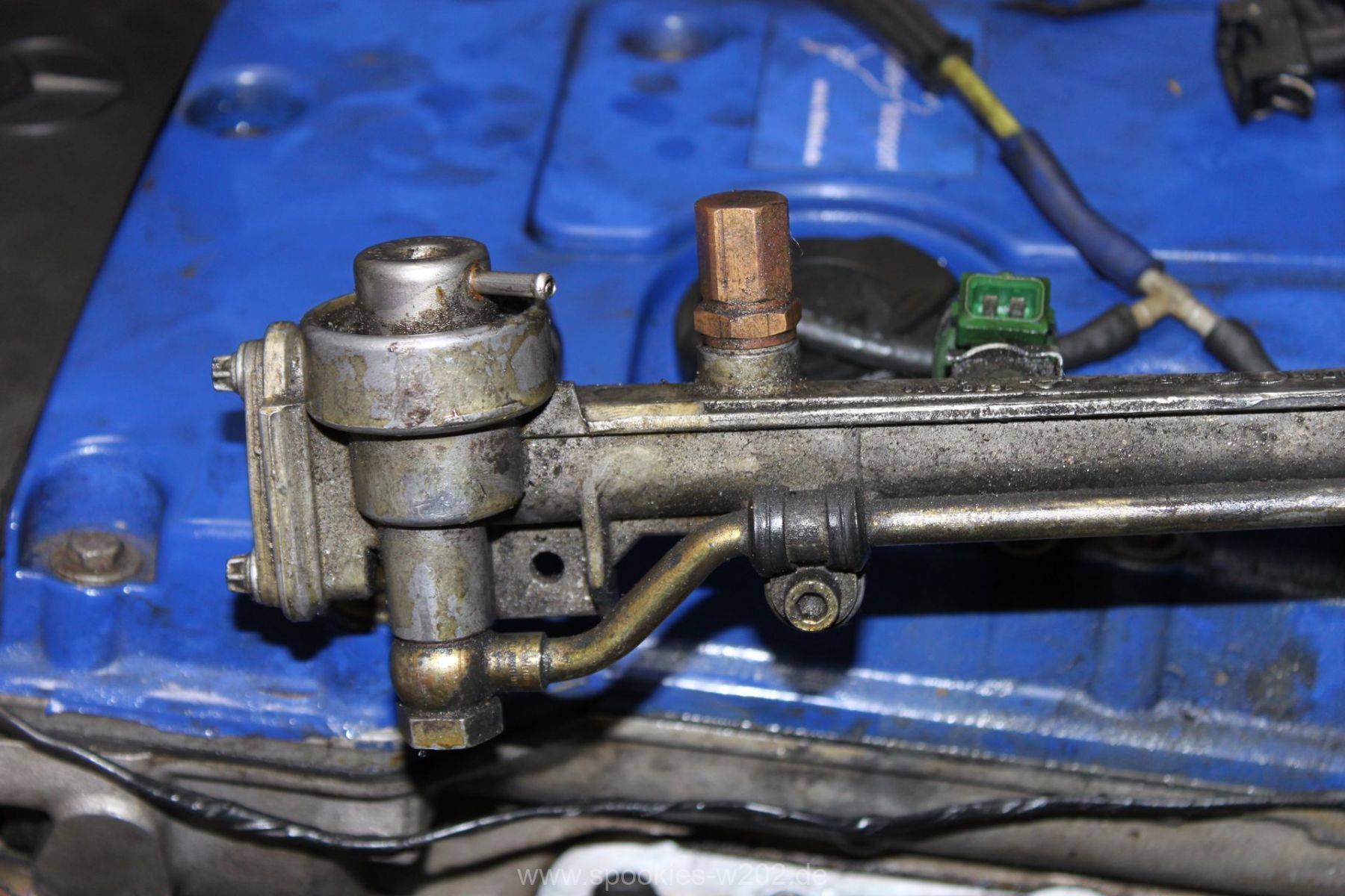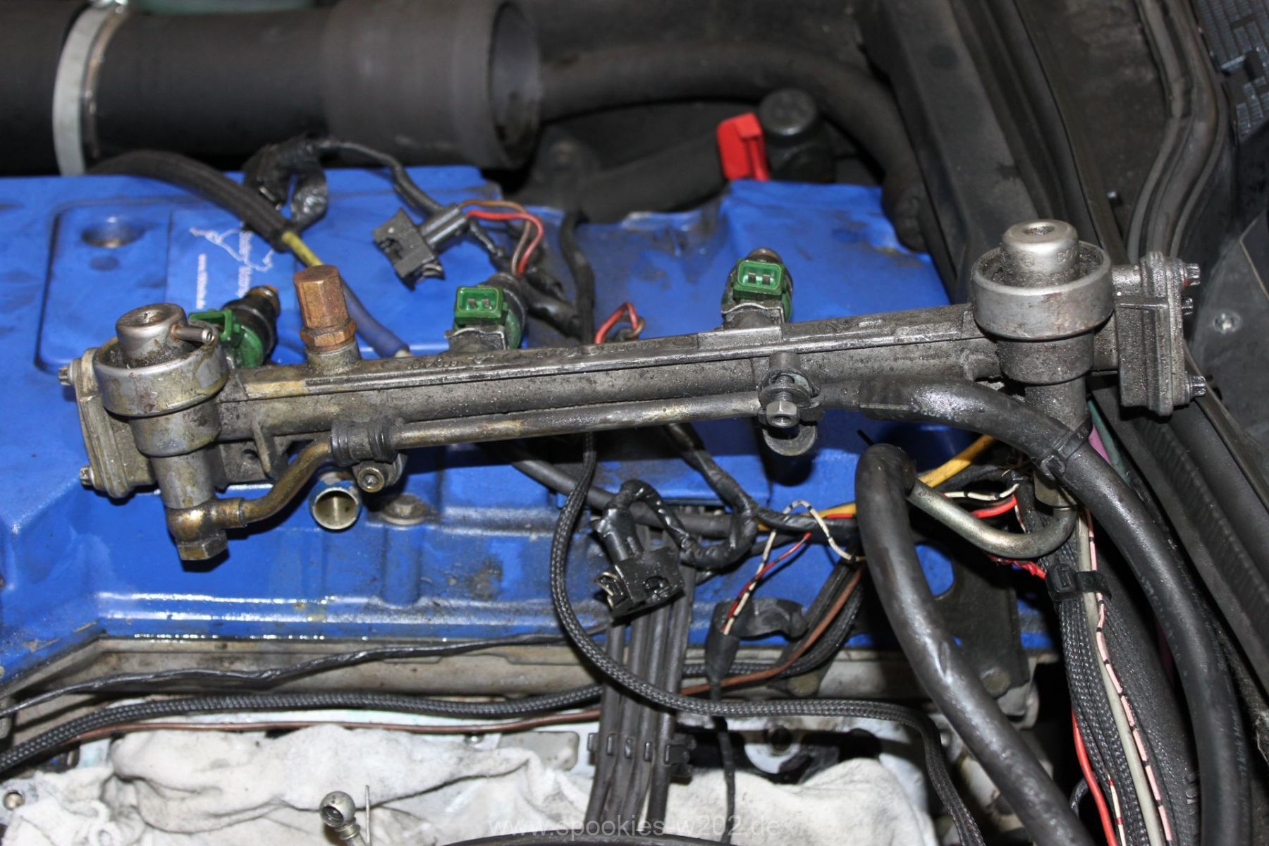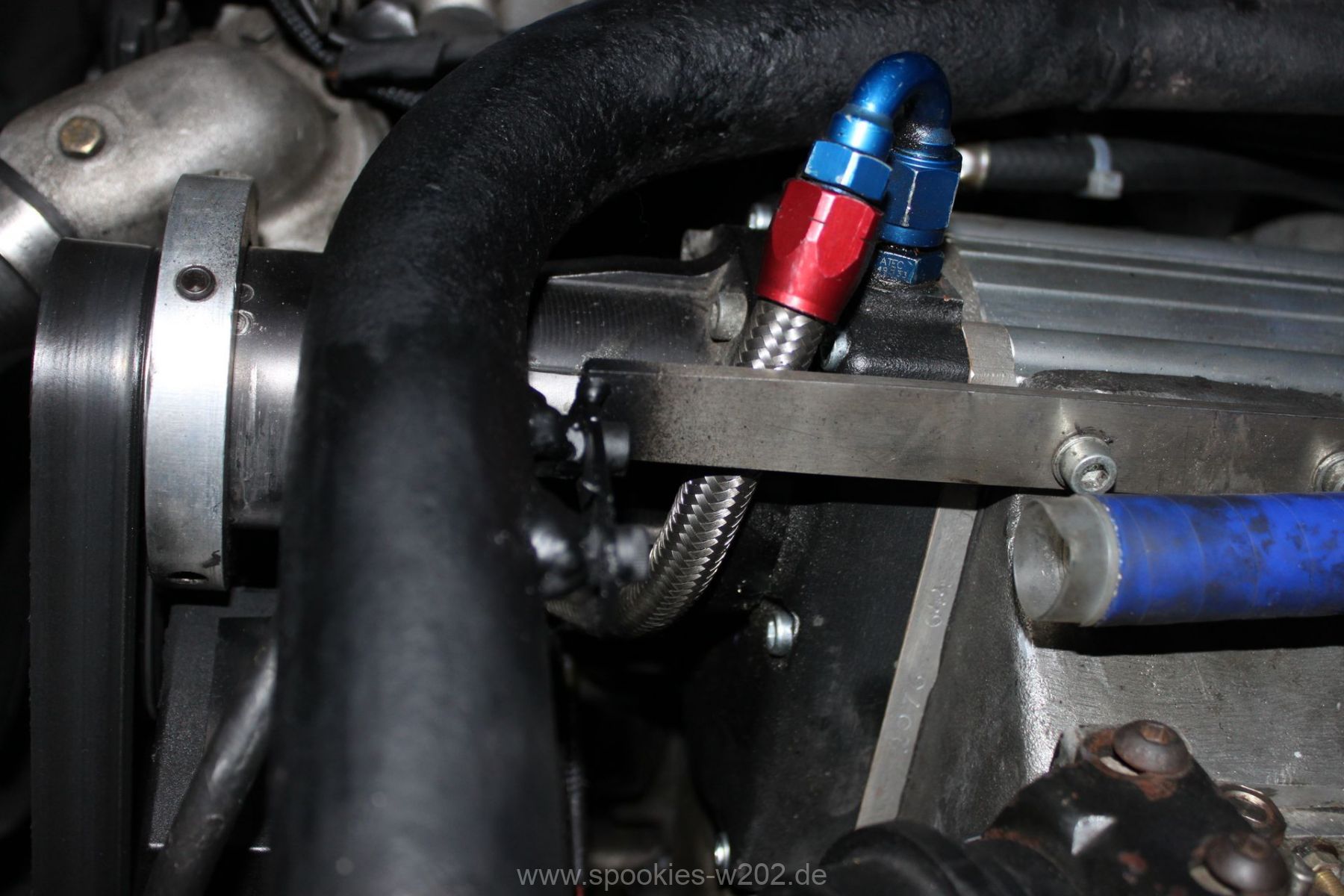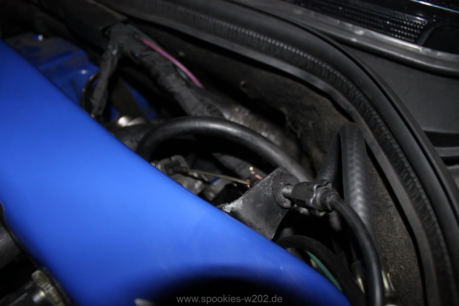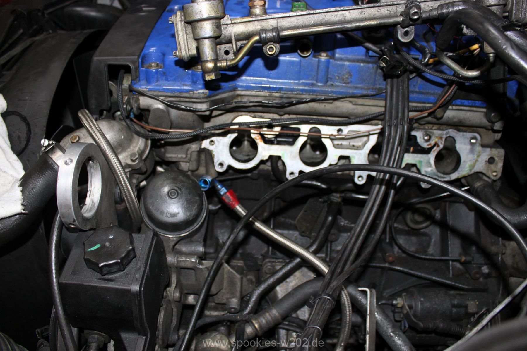 Stören tut mich noch der blaue Schlauch, den man auf dem Lader sieht und der auch keine Funktion mehr hat, seitdem er zugemacht werden musste. Einfach entfernen ging nicht, weil das Loch am Lader zu groß war um es zu schweissen, aber das wird in naher Zukunft auch noch verschwinden, um die Optik zu verbessern. Ebenso die Lackplatzer und unnötigen Löchter an der blauen Brücke. Im Zuge von Lackierarbeiten wird das wohl in 2012 schön hergerichtet werden, dann wenn feststeht, wo ein Ladeluftkühler reinkommt. Dann auch wird das schwarz angemalte Ladedruckrohr aus einem Guß gebogen werden von einem Rohrbieger, nur die Optik davon ist noch offen, da es mit dem schlichten schwarz sehr gut ausschaut.