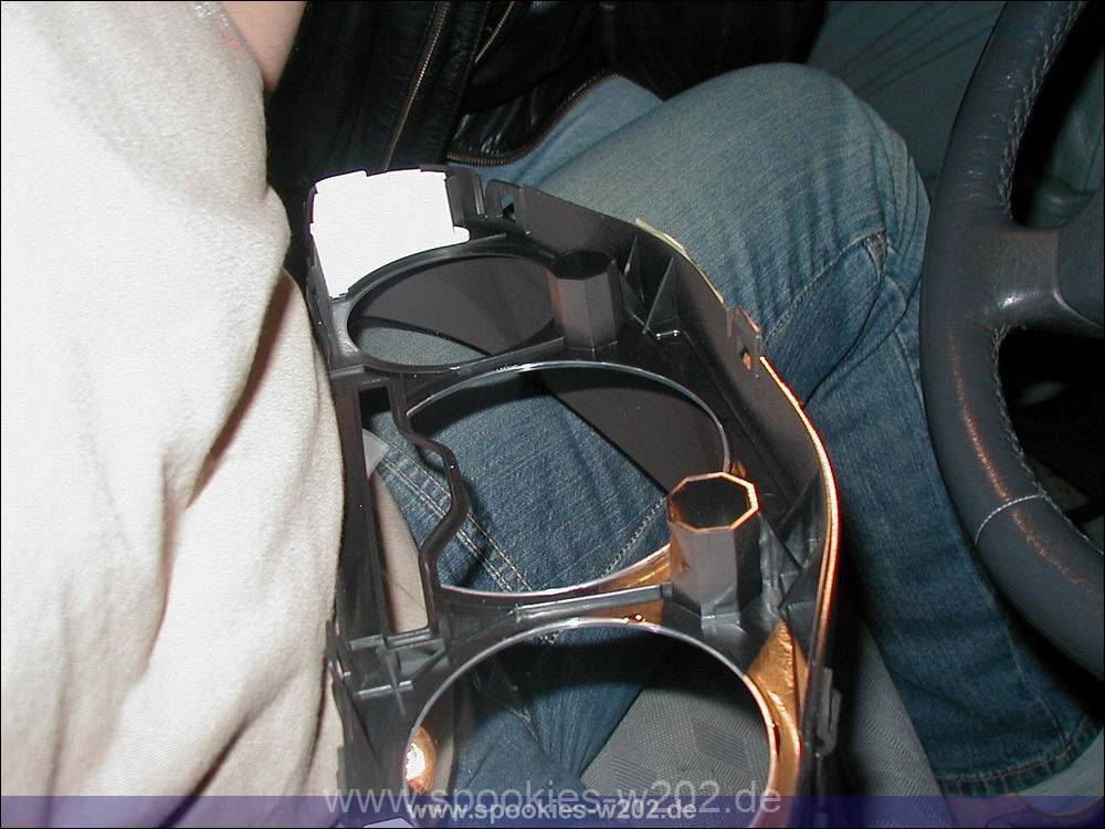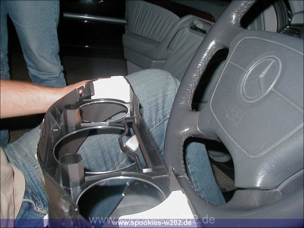 - Die Mercedes Ausziehhaken (Artikelnummer W140 589 023300, € 8,53 (Stand 01/2010)) links und rechts an der Knickkante ansetzen und reindrücken