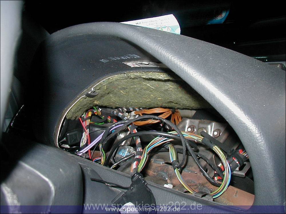Hinweis: Sollte man diese Haken nicht haben oder kaufen wollen, kann man alternativ die Abdeckung im Fussraum unter dem Lenkrad abmachen (3 Schrauben) und dann von hinten rausdrücken. Das ganze ist aber aufwendiger und dauert länger. - Nun kann man das Kombiinstrument soweit anziehen, wie es die Kabel an der Rückseite mitmachen