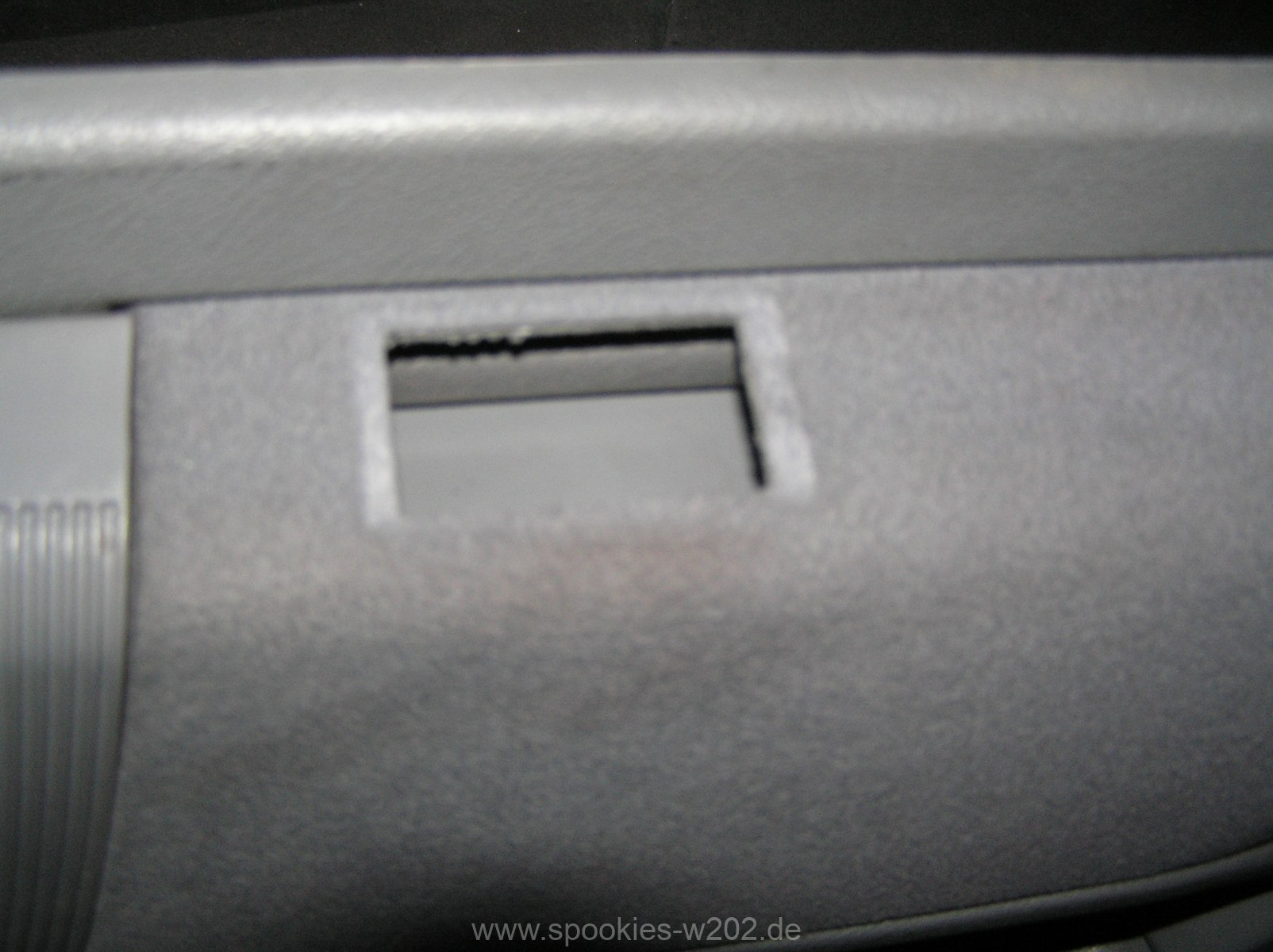 Nun sehen wir die Unterseite der Türverkleidung sowie die Innenseite der Verkleidung, wo das Kabel gelegt werden soll: