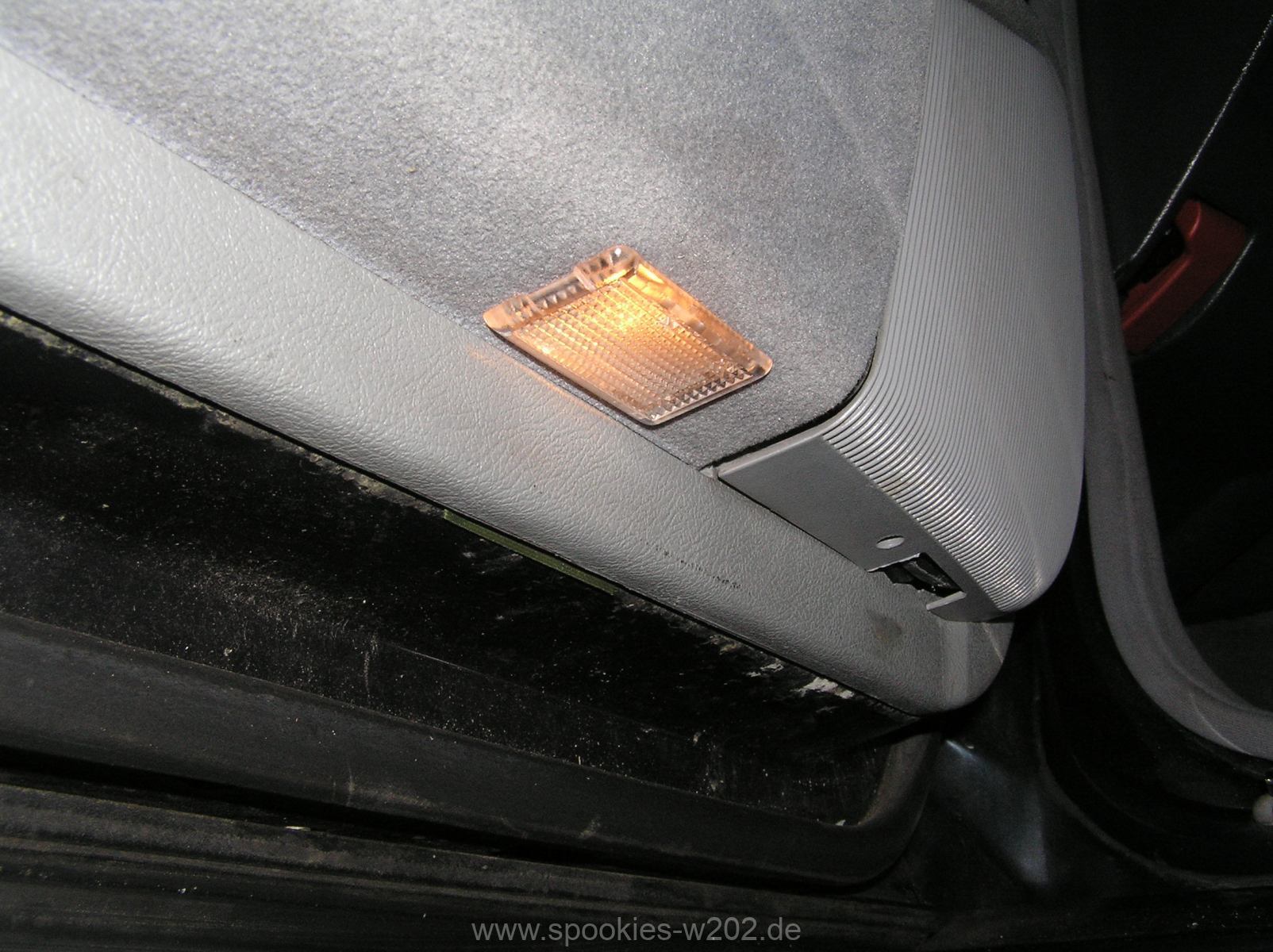 Mercedes-Benz C180 Kompressor Unikat (W202) – Modifikationen – Interieur – Ausstiegsleuchten an den vorderen Türen, später mit Superflux LED Sofitten