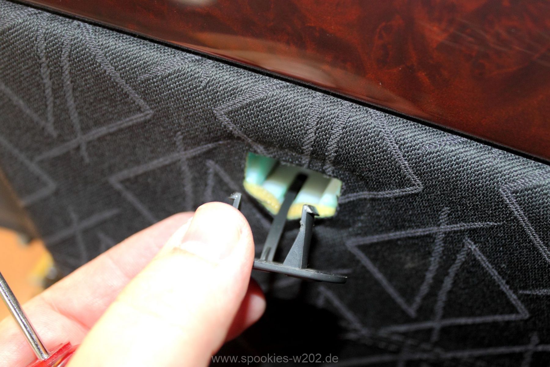 Weter geht es mit der oberen Zierleiste. Vorsichtig den schwarzen Dämmstoff abnehmen.