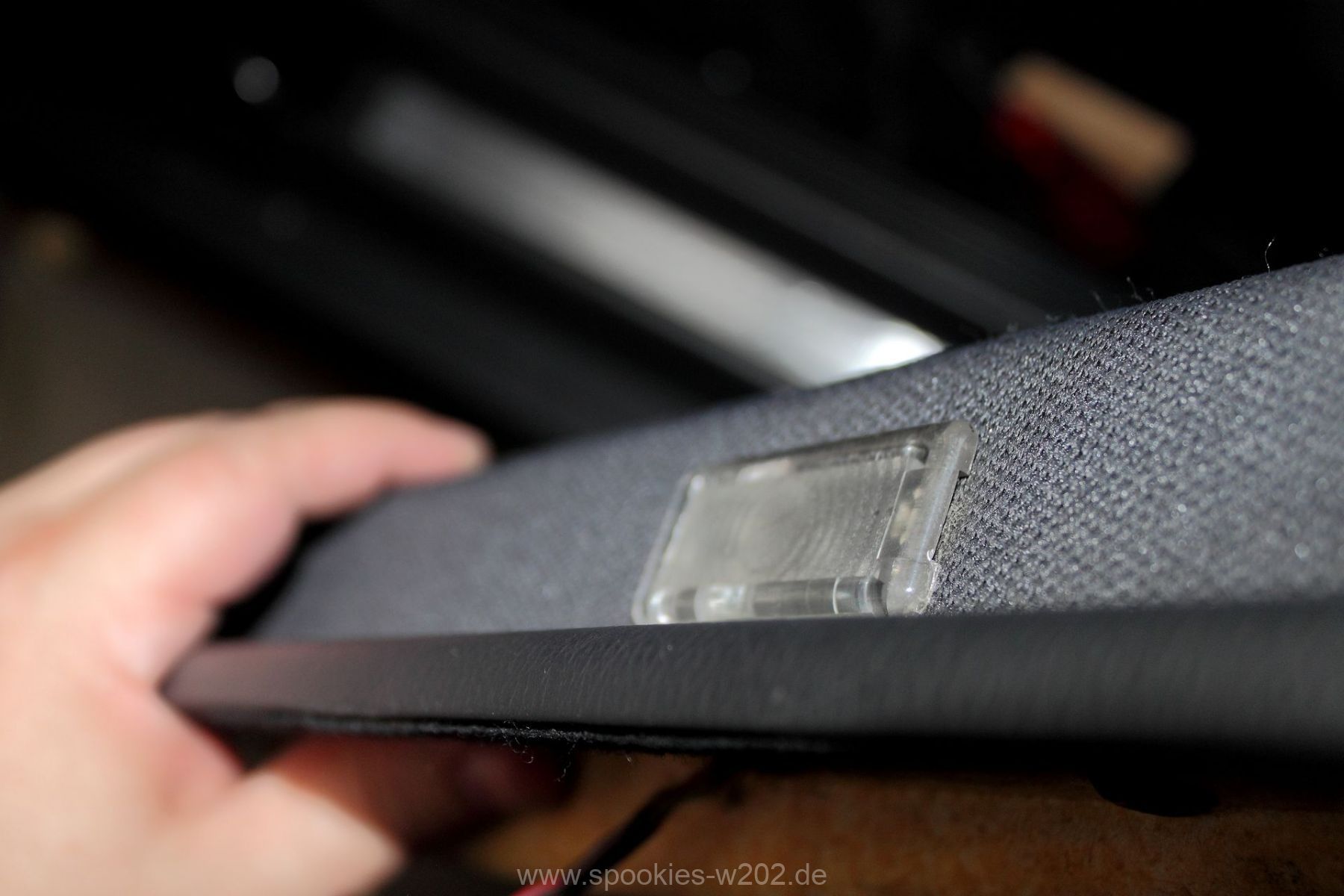 Hat man die 3 Seiten links, unten und rechts gelöst, schieben wir die Verkleidung nach oben heraus. Da ist das geöffnete Fenster sehr praktisch. Hebt es aber nicht zu weit an.
