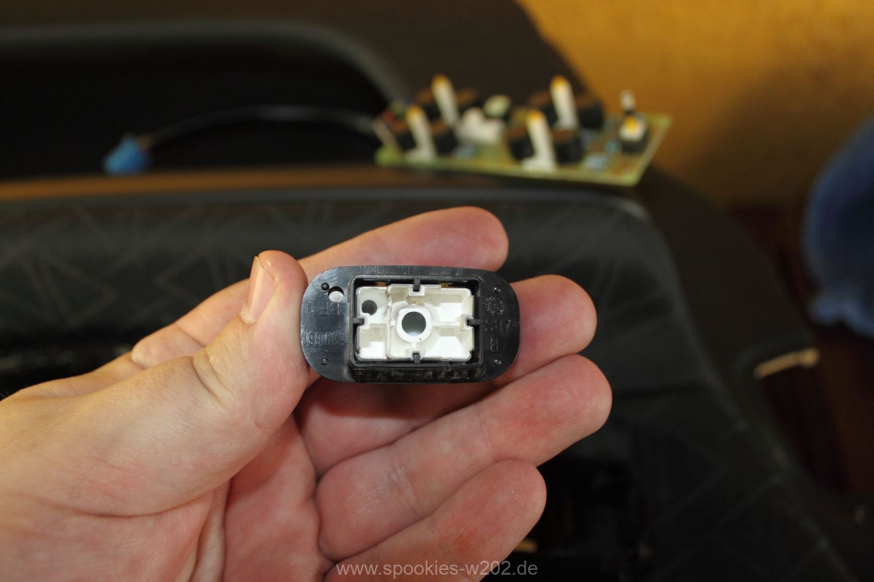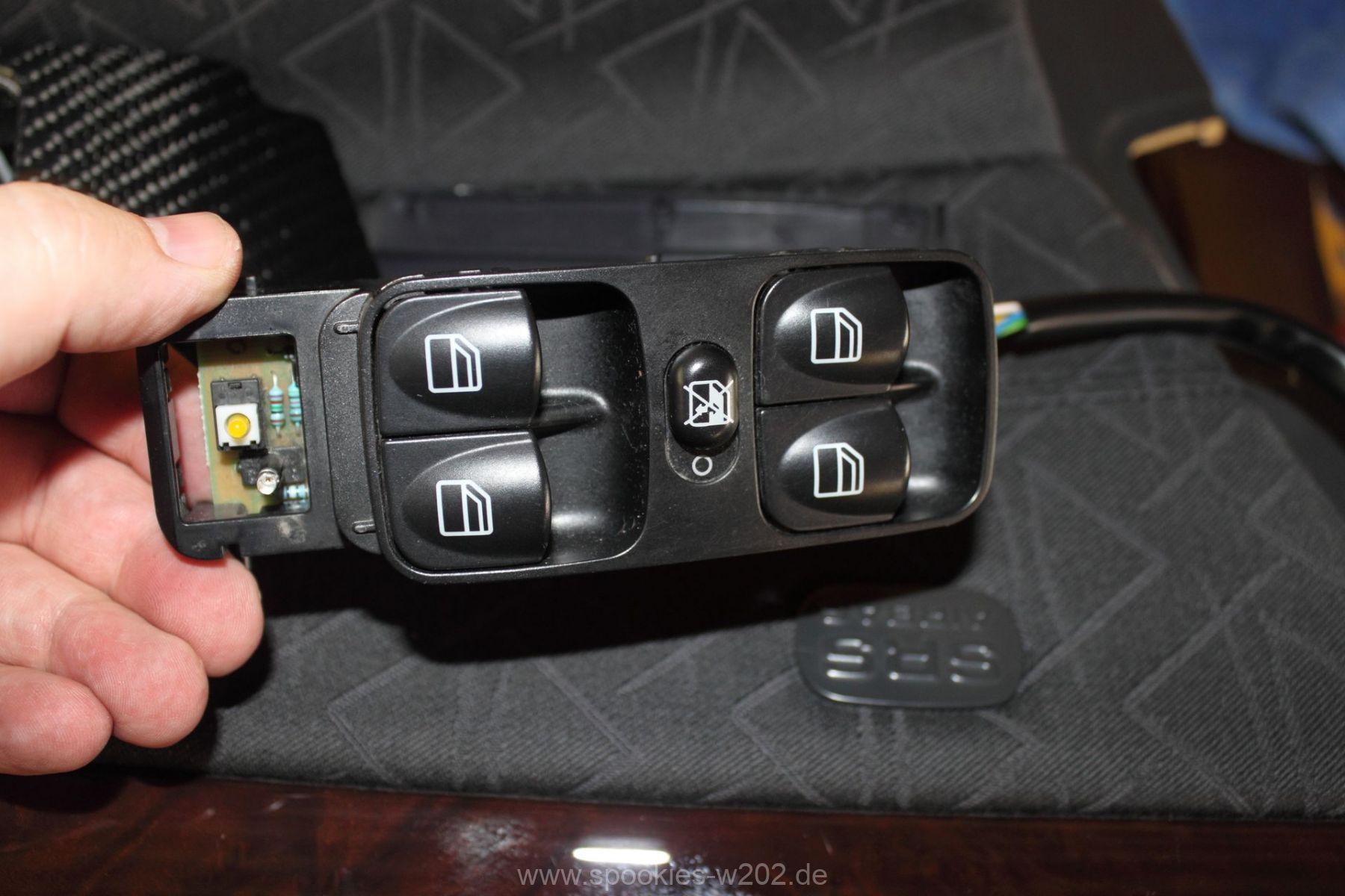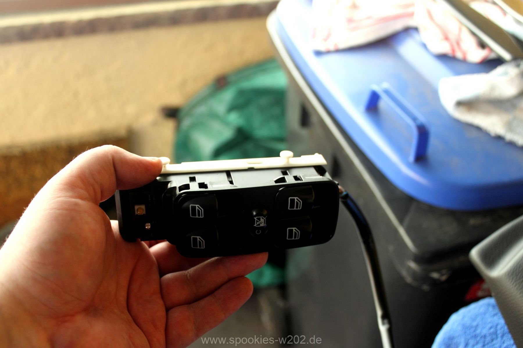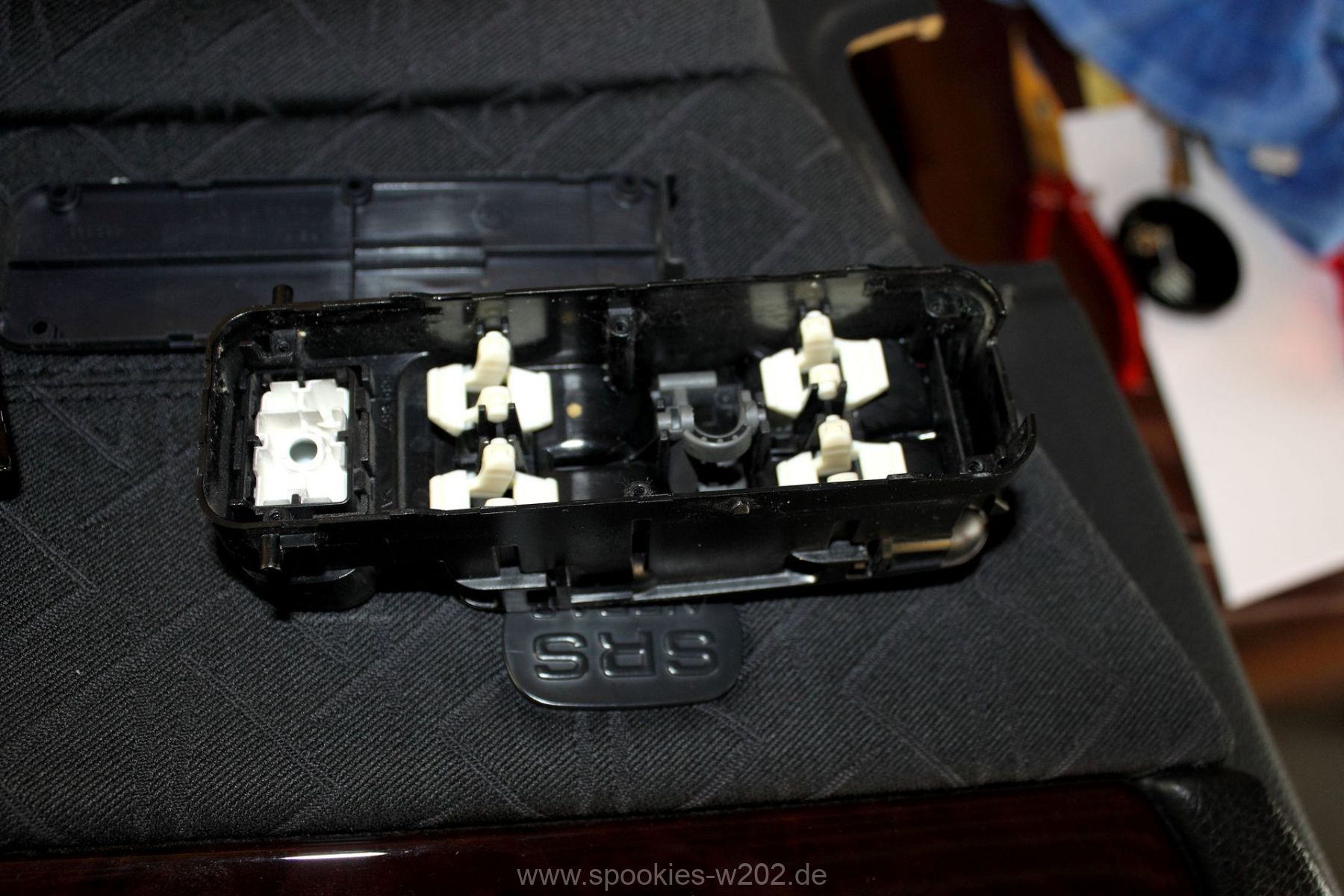 In der Türverkleidung sehen wir den Schalterblock von hinten, diesen muss man nur etwas schieben und kann ihn dann Ausclipsen. Es ist im Grunde selbsterklärend. Anschließend kann der Block abgenommen werden.
