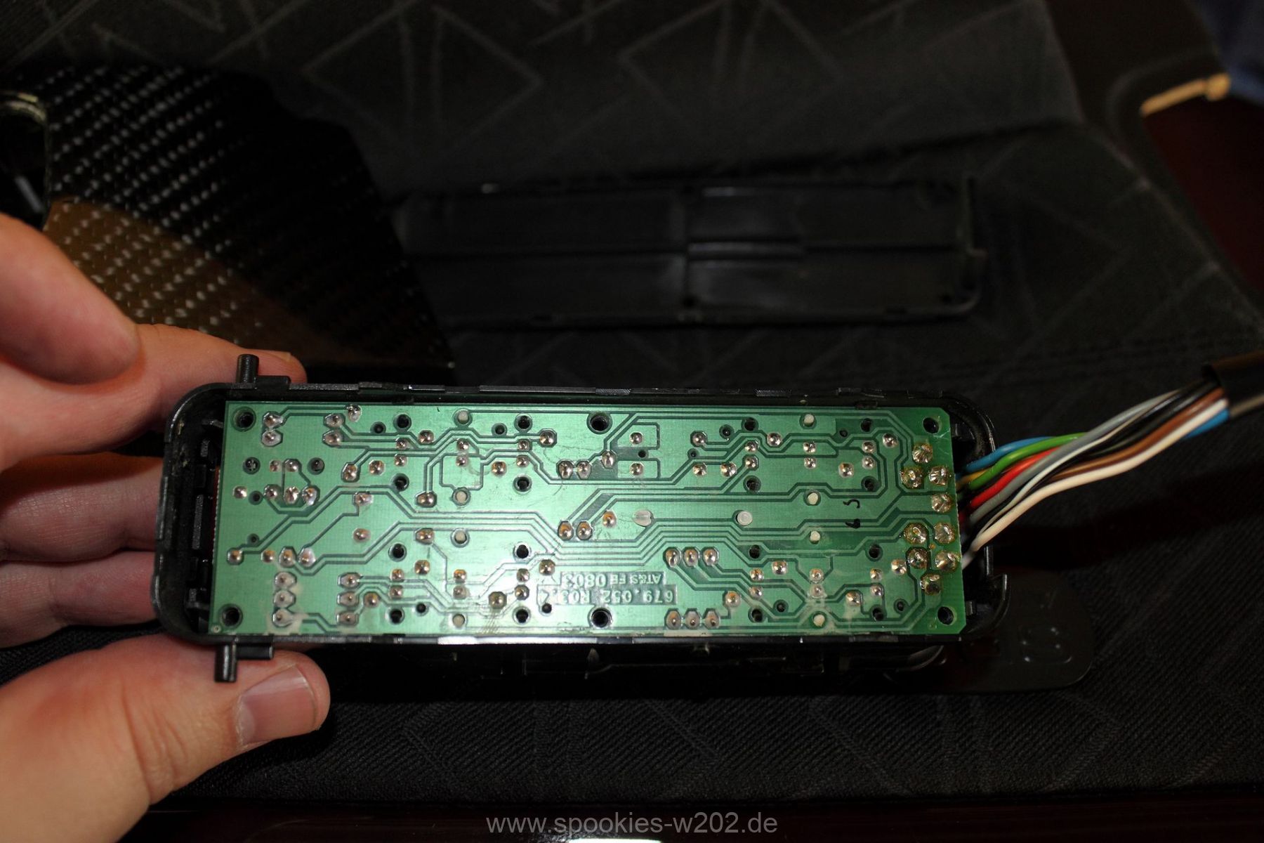 Nun sehen wir das vorbereitete Modul, in Eurem Fall hoffentlich komplett. Dies kann man nun komplett schon in die neue Carbonblende einclipsen und so das ganze wieder in die Verkleidung stecken und die Schrauben festziehen.