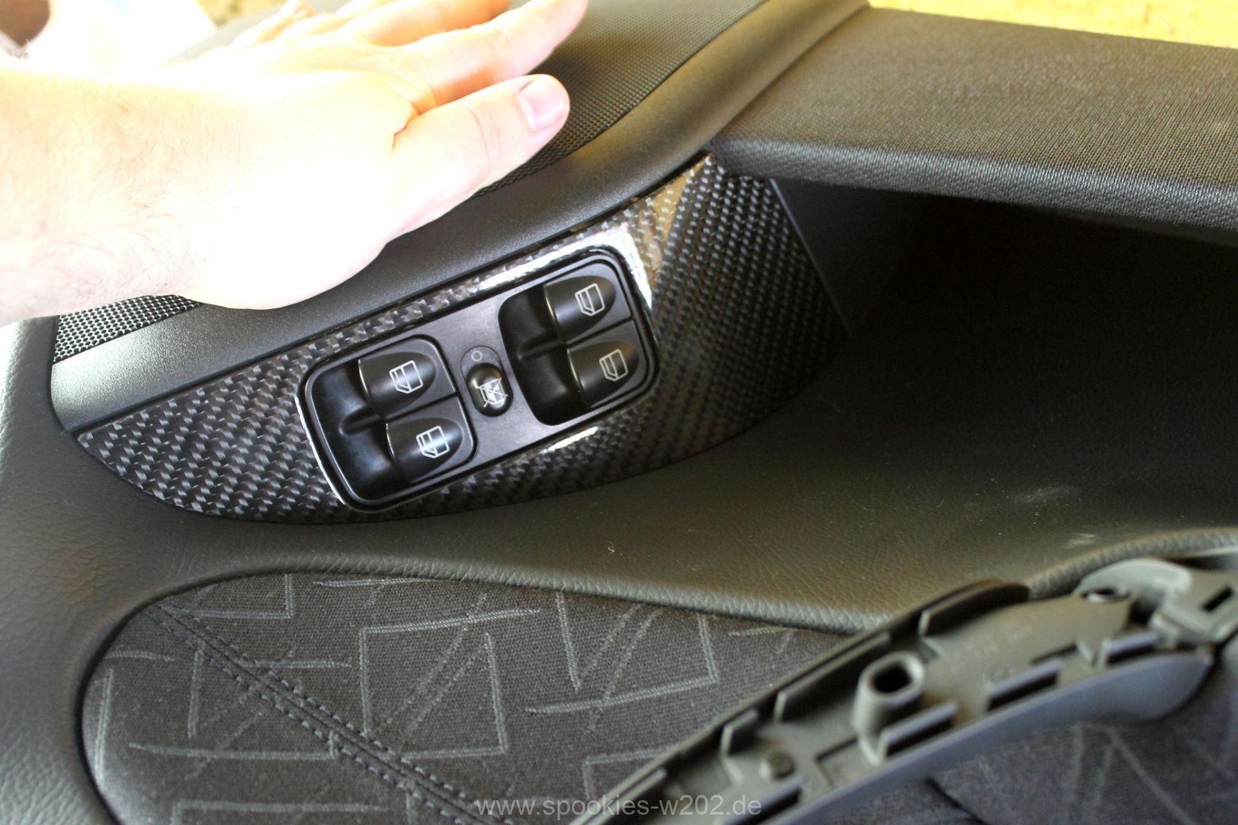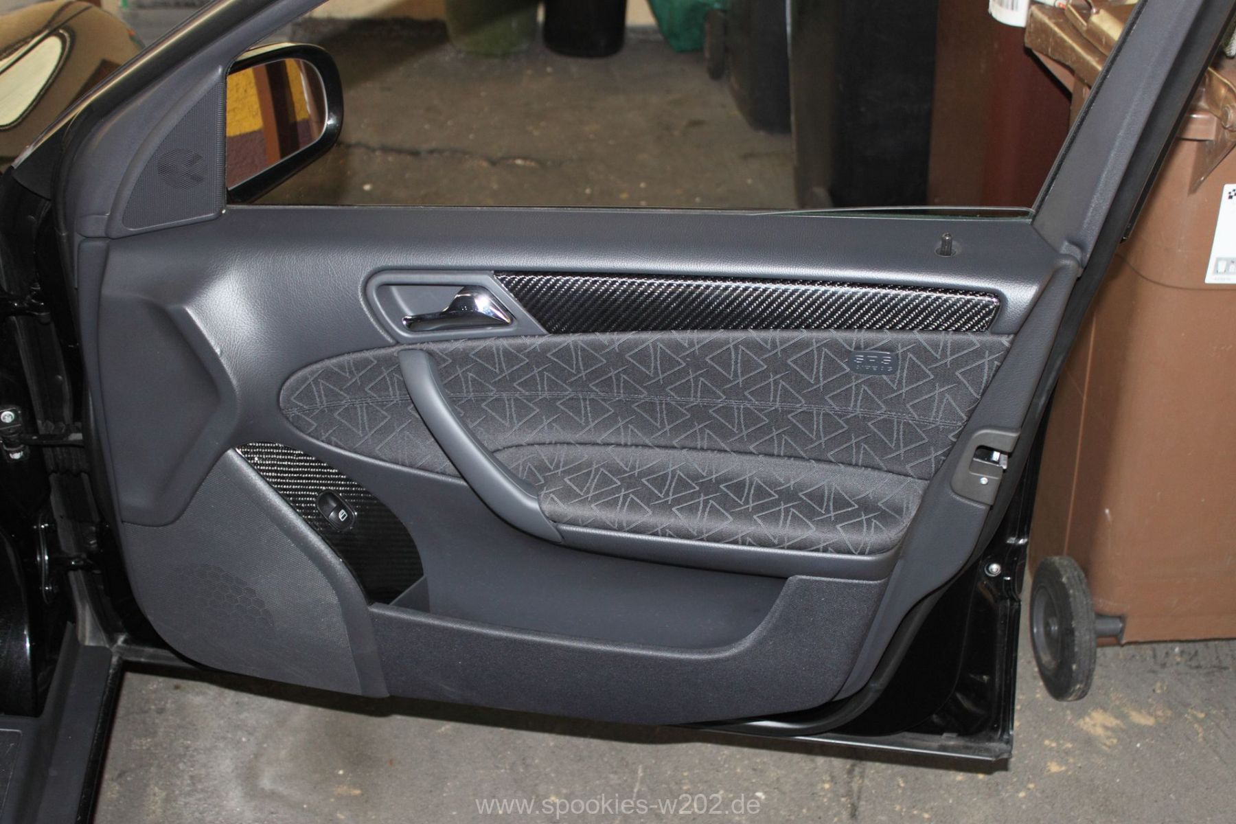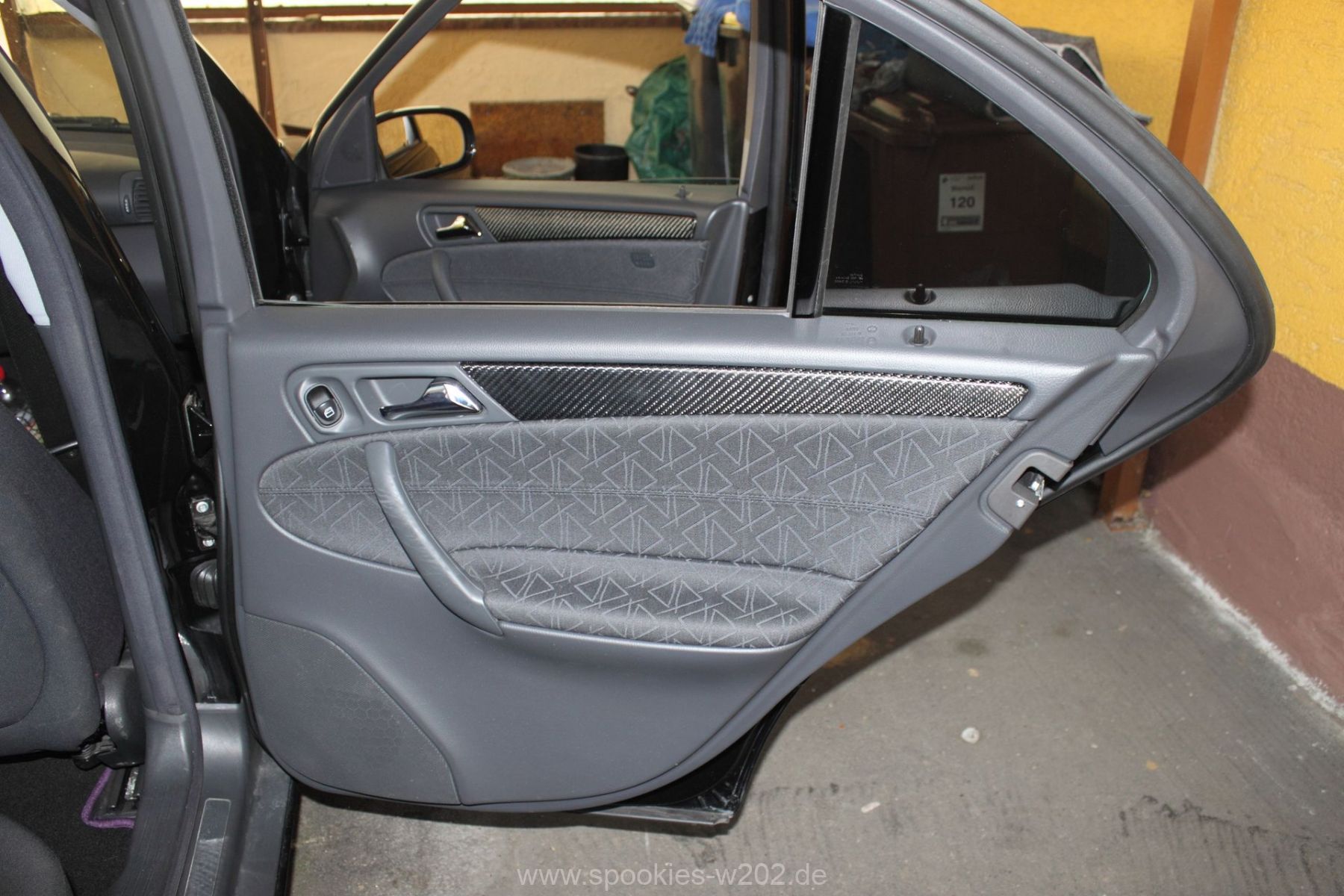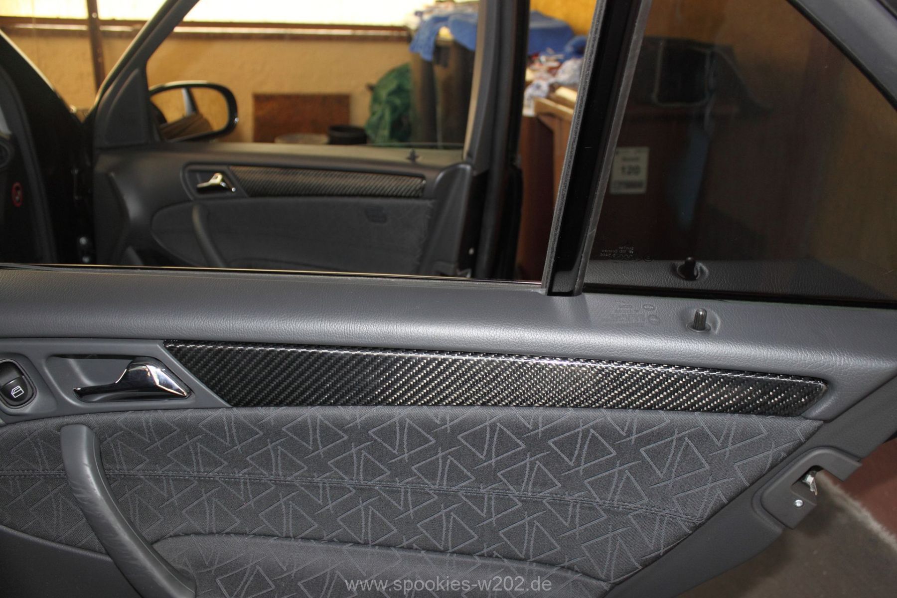 Mercedes-Benz C240 (W203) – Modifikationen – Interieur – Holzzierleisten wurden mit Echtcarbonfasern überzogen – Zierleistentausch Türverkleidungen