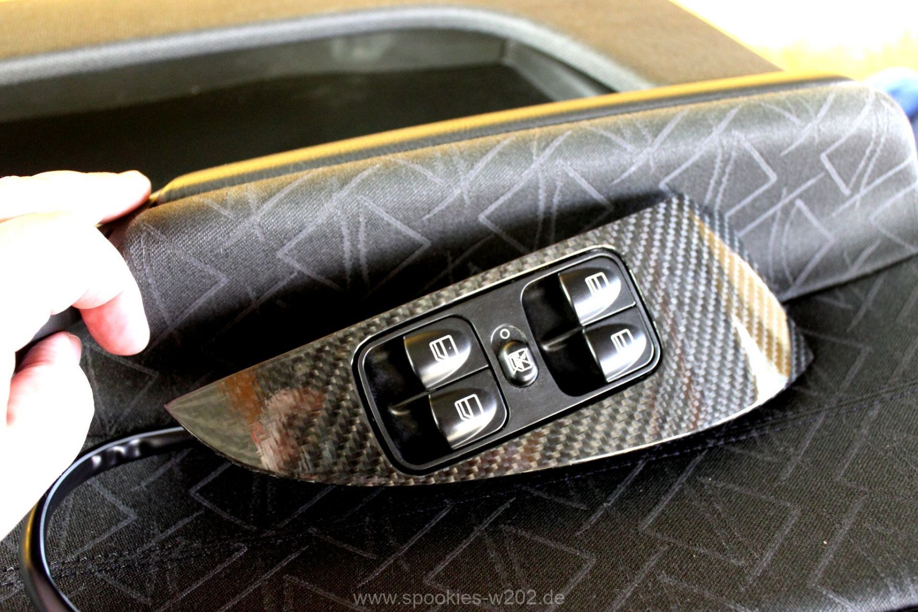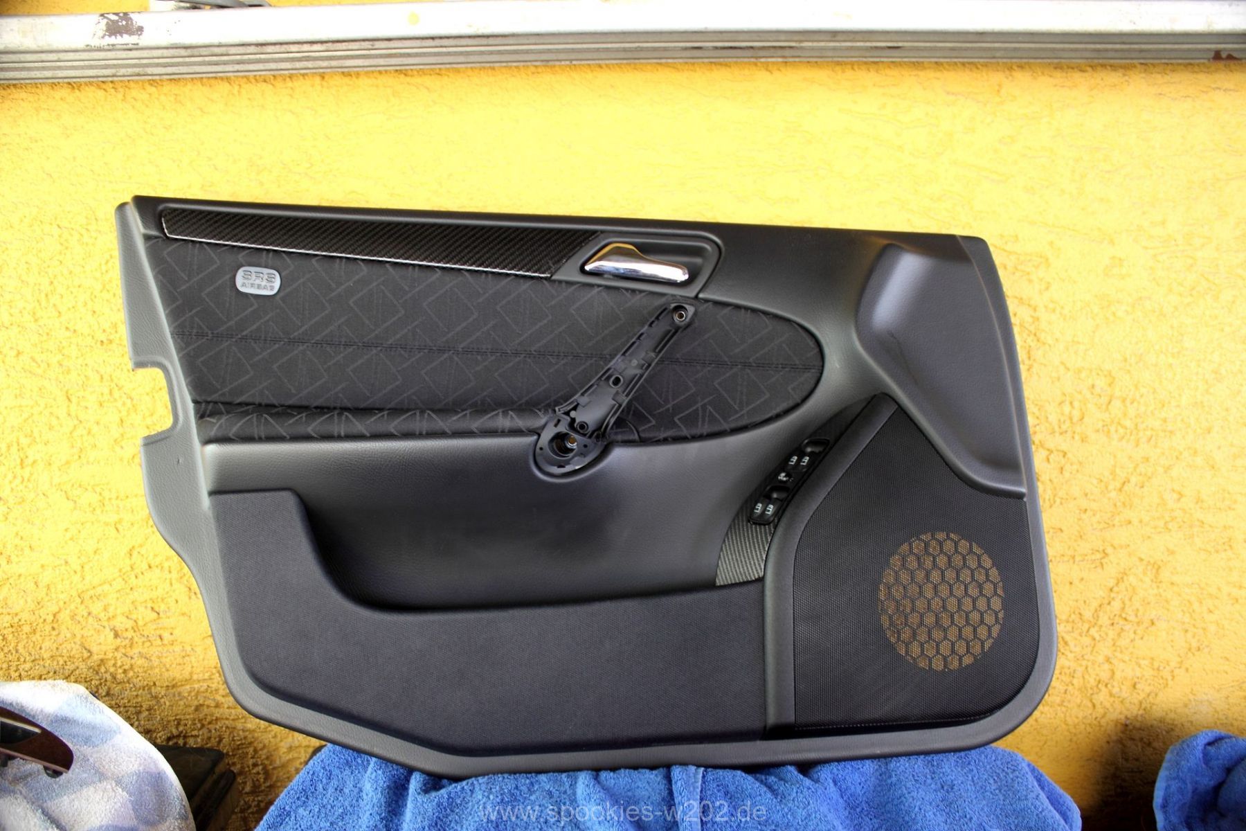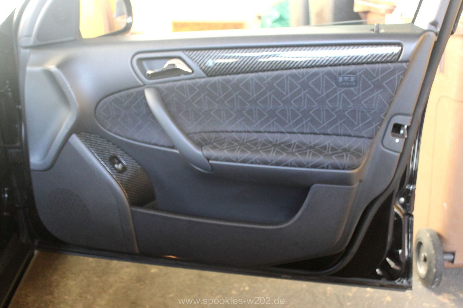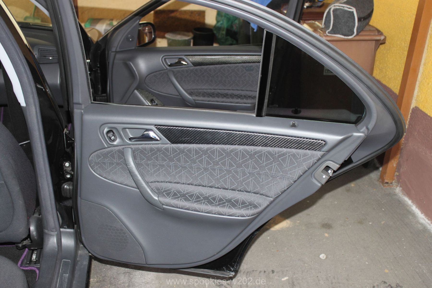 Mercedes-Benz C240 (W203) – Modifikationen – Interieur – Holzzierleisten wurden mit Echtcarbonfasern überzogen – Zierleistentausch Türverkleidungen