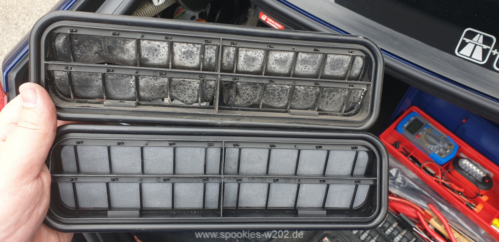 Durch das Alter oder einen unqualifizierten Ausbau/Einbau (beim Vorbesitzer) sitzen die Dichtungen nicht mehr exakt genug. Das reicht schon aus, dass Wasser rein läuft. - Kofferraumentlüftung links und rechts