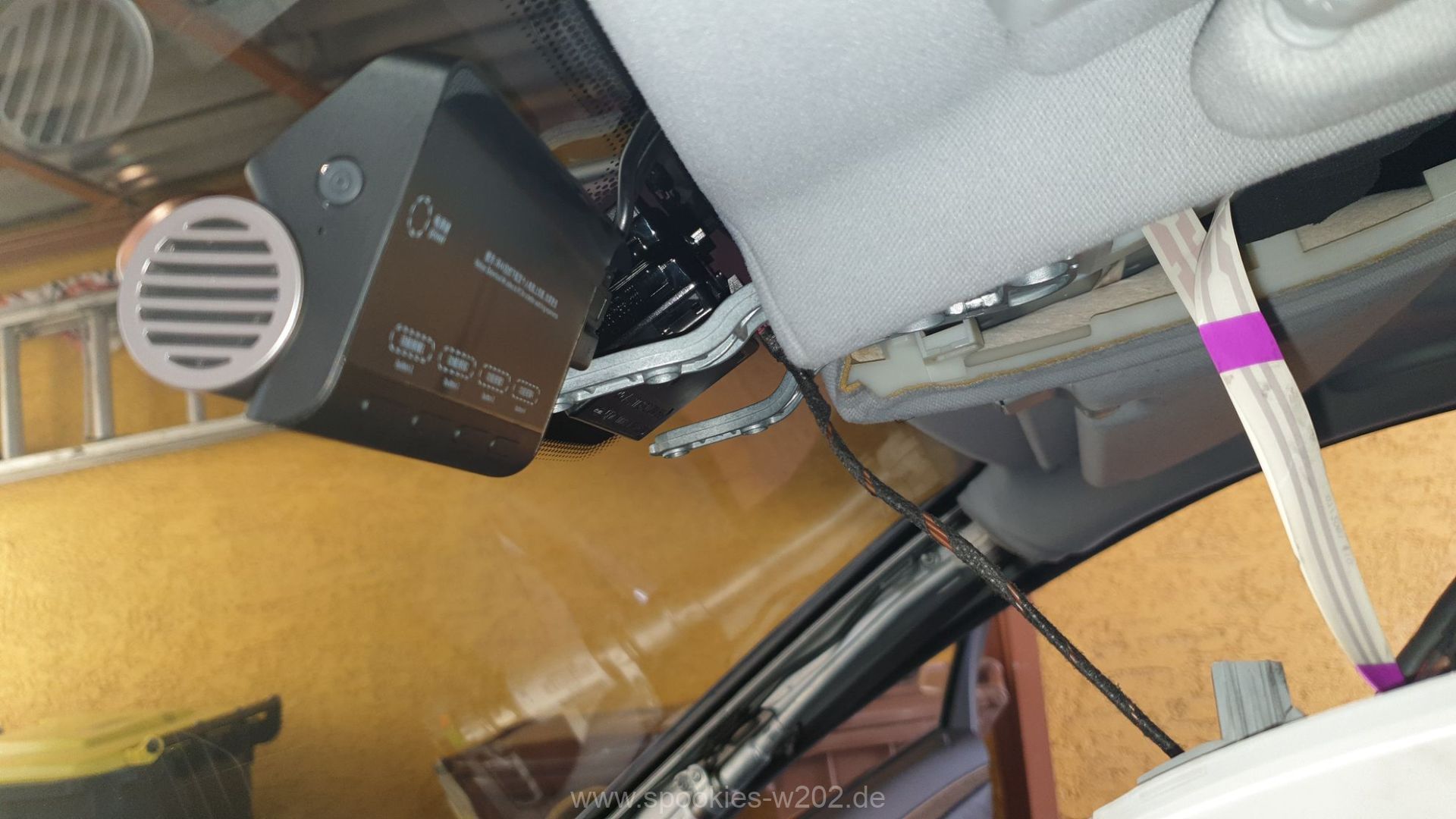 Vorteile: klein und praktisch zu verbauen. Wenn man gleich die Kabelsätze mitbestellt, ist das ganze eine relativ einfache Geschichte. Ich habe sie mir auf die Fahrerseite gehängt, die Kabel gehen direkt in den Dachhimmel hoch, vorbei an der Dachbedieneinheit und dann runter an der A-Säule vom Beifahrer. von dort aus geht der elektrische Anschluss zum Mitteltunnel, um Dauerplus abzugreifen, welches z.B. am Klappfach anliegt. Das zweite Kabel für die Rear Kamera geht im seitlichen Kabelkanal bis nach hinten und die Rücksitzbank hoch. Von dort aus unter der C-Säulenverkleidung unter den Dachhimmel und dort dann mittig setzen. Der Verlauf ist nicht der schnellste, aber es soll sauber aussehen.